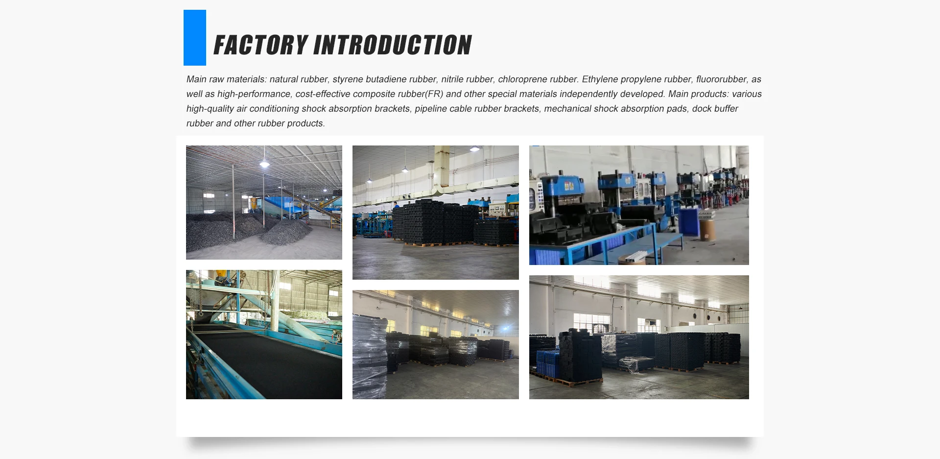 Productos principales:Almohadilla de goma condicional, pies de goma de bomba de calor, soporte de goma, pie fijo, bloque de goma
